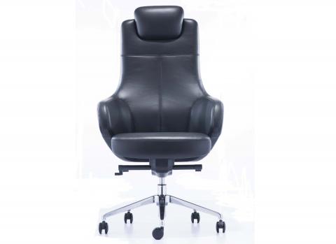 كرسي تنفيذي مع تصميم دقيق نموذج مريح وفاخر في تنجيد الجلد الأسود.